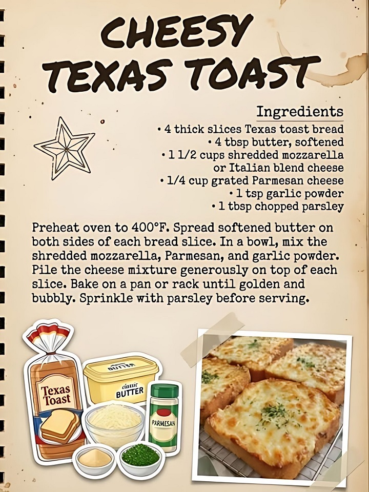 Not only is Cheesy Texas Toast a crowd-pleaser, but it also offers a satisfyingly crispy exterior paired with a soft, cheesy center that will have you coming back for more.